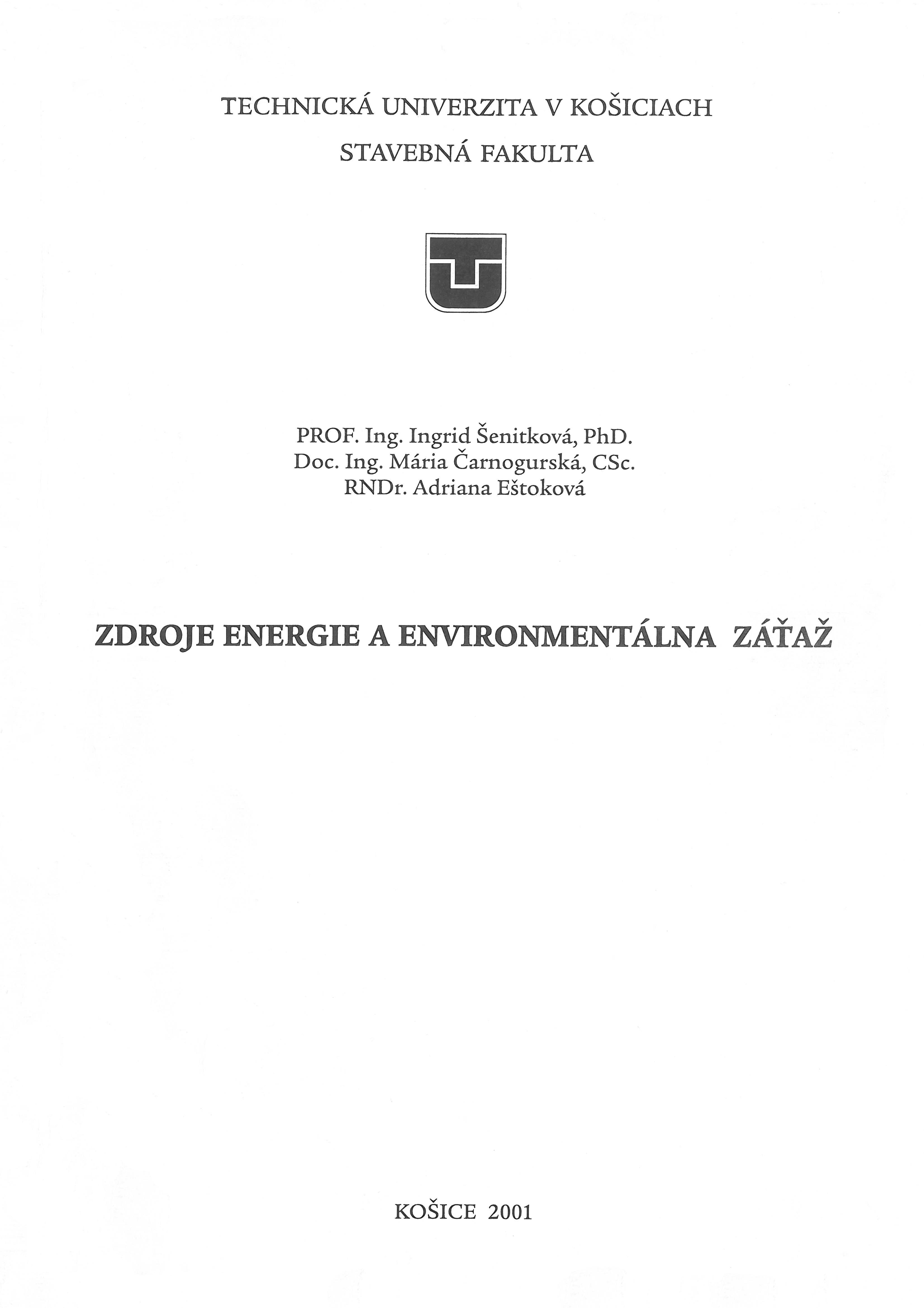 Zdroje energie a enviromentálna zátaž Rok vydania: 2001 |